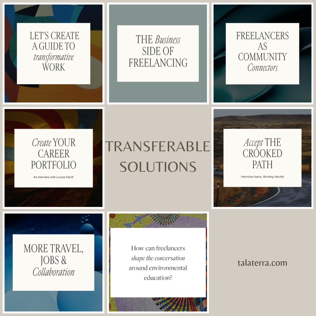 The primary communication vehicle for my work is Transferable Solutions, a newsletter with the theme "Environmental Skills, Reimagined." It is where I announce new podcast episodes and share my observations and learnings. It is also where I spotlight the work of environmental education professionals and invite readers to engage with me and with one another.